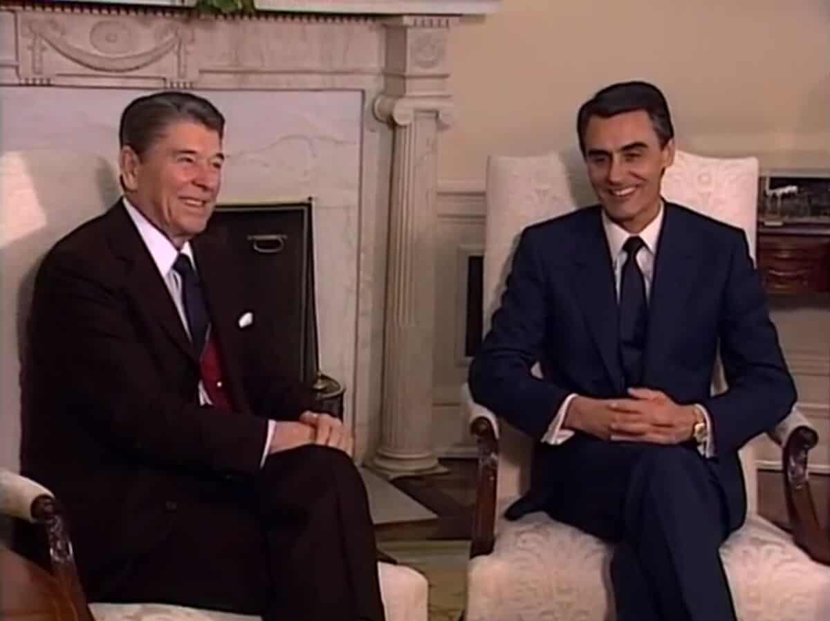 [https://www.youtube.com/watch?v=d8dK_X7g-uw "President Reagan's Meetings with Prime Minister Silva of Portugal on February 24, 1988", via YouTube (5m 14s) - Author: Reagan Library