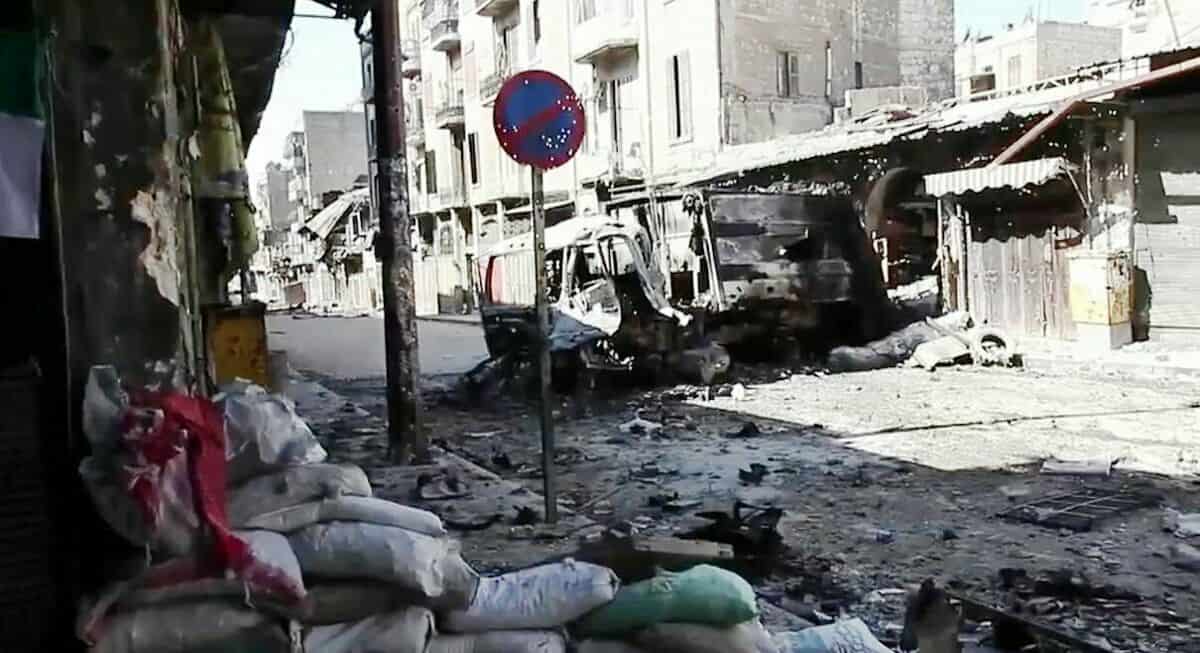 • Source URL: https://en.wikipedia.org/wiki/File:Bombed_out_vehicles_Aleppo.jpg