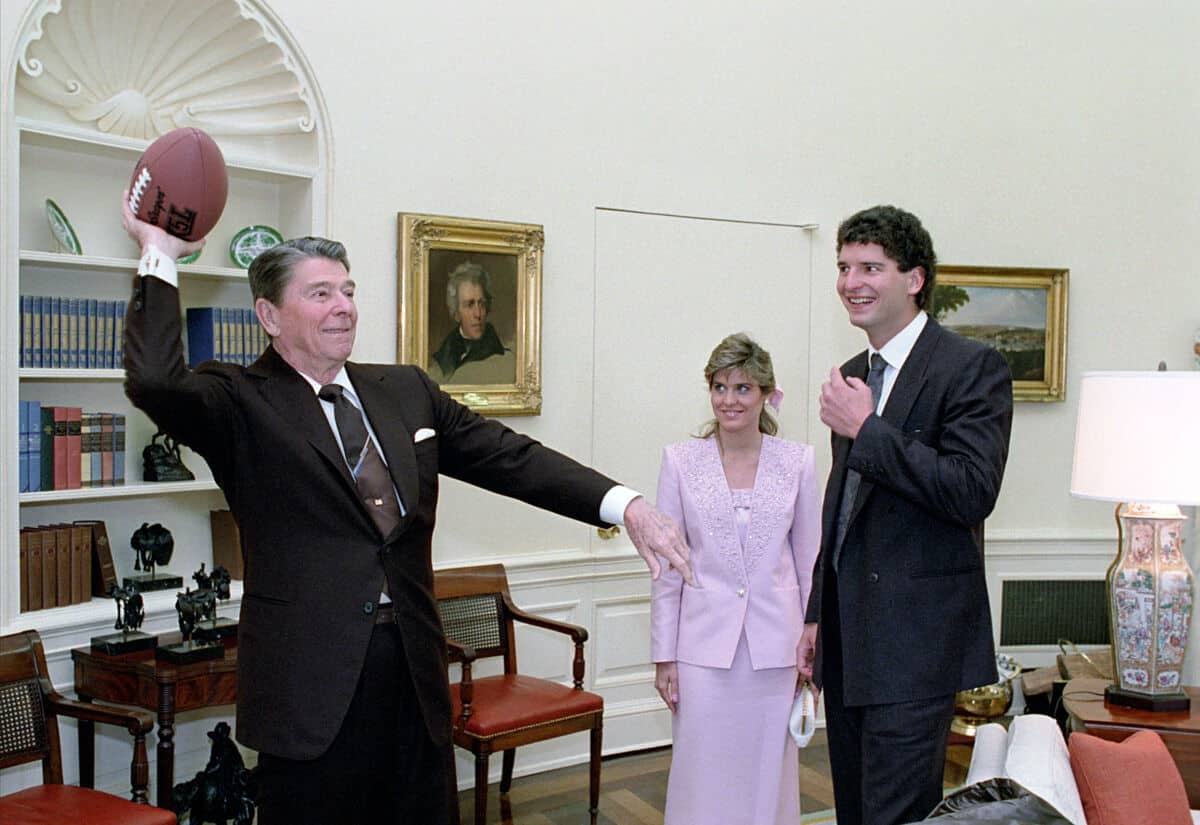 • Source URL: https://en.wikipedia.org/wiki/File:President_Ronald_Reagan_throwing_a_football_during_a_photo_op_with_football_player_Bernie_Kosar_of_the_Cleveland_Browns.jpg