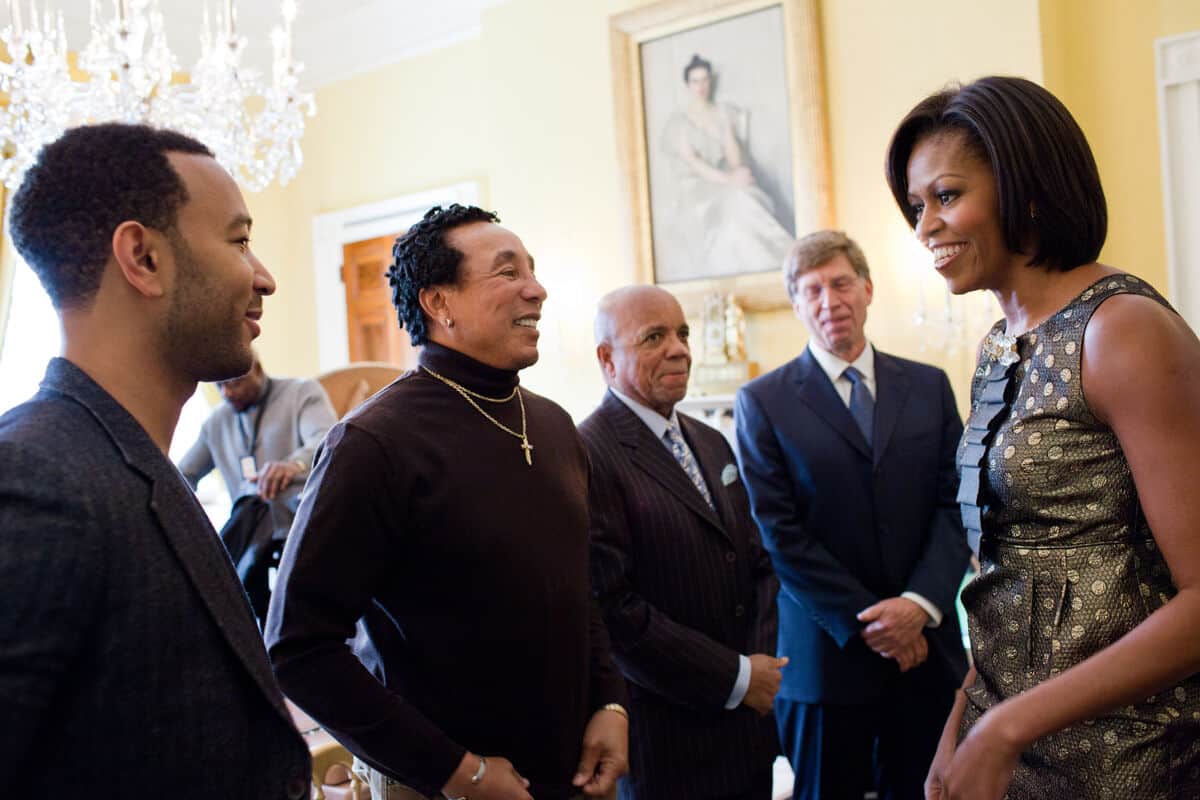 - Source URL: https://en.wikipedia.org/wiki/File:John_Legend,_Smokey_Robinson,_Berry_Gordy,_and_Bob_Santelli_meet_with_Michelle_Obama,_2011.jpg