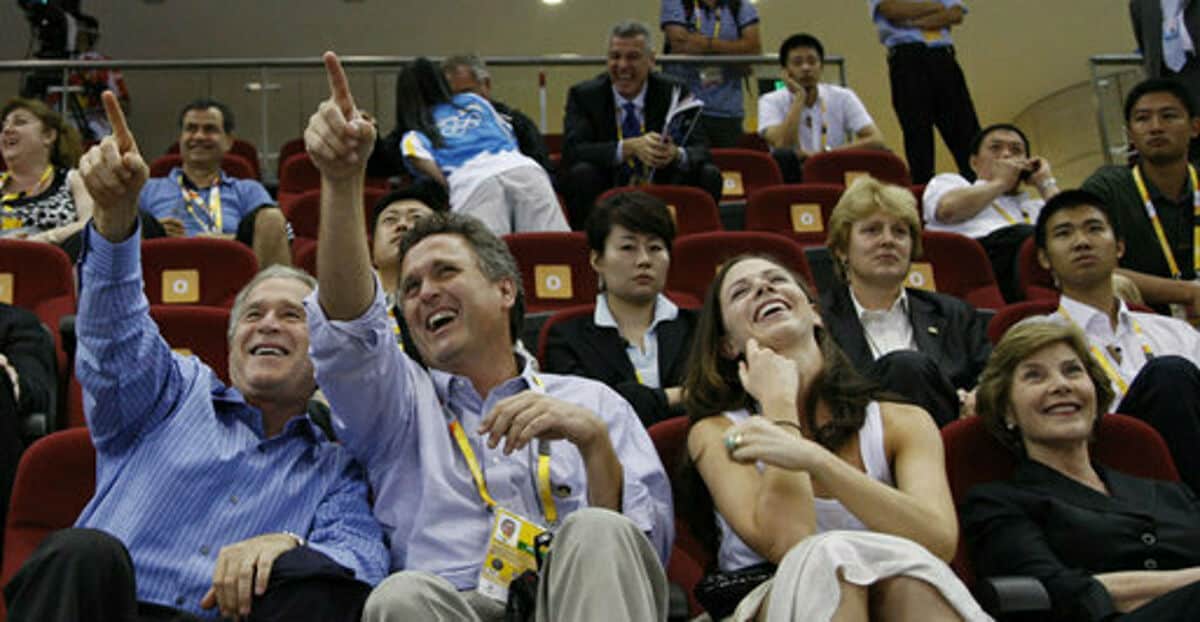 - Source URL: https://en.wikipedia.org/wiki/File:Bushes_watch_USA_vs._Czech_Republic_women%27s_basketball_game_at_2008_Summer_Olympics_2008-08-09.jpg
