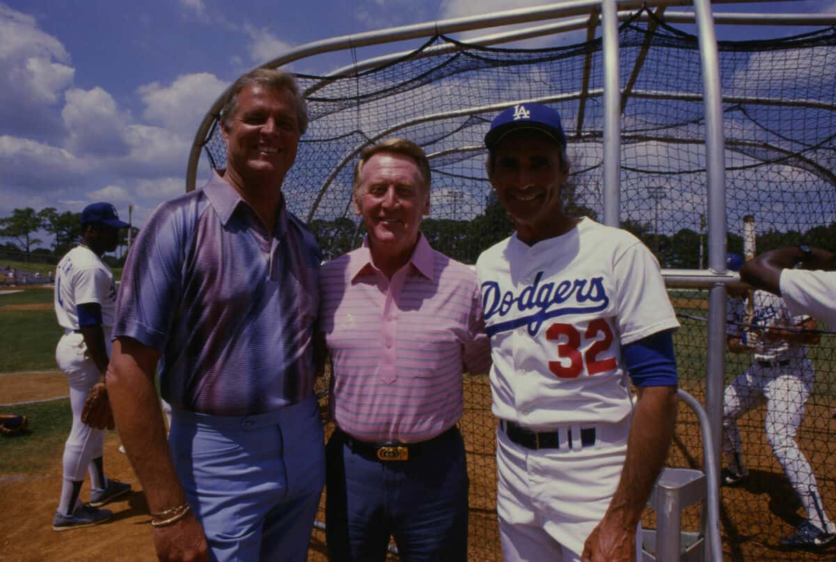 - Source URL: https://en.wikipedia.org/wiki/File:Vin_Scully_(center),_Dodgers_announcer,_in_Dodgertown_for_Spring_Training_with_pitchers_Don_Drysdale_(left)_and_Sandy_Koufax_(right),_1985.jpg