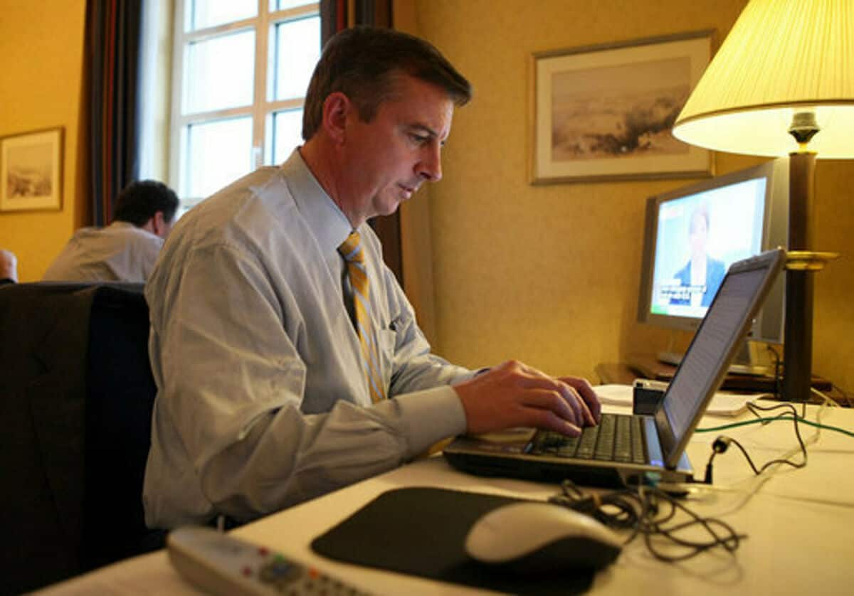- Source URL: https://en.wikipedia.org/wiki/File:Ed_Gillespie_at_work_on_the_Mideast_Trip_Notes.jpg