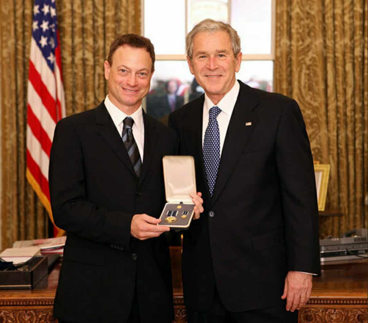 - Source URL: https://en.wikipedia.org/wiki/File:President_George_W._Bush_and_Gary_Sinise.jpg