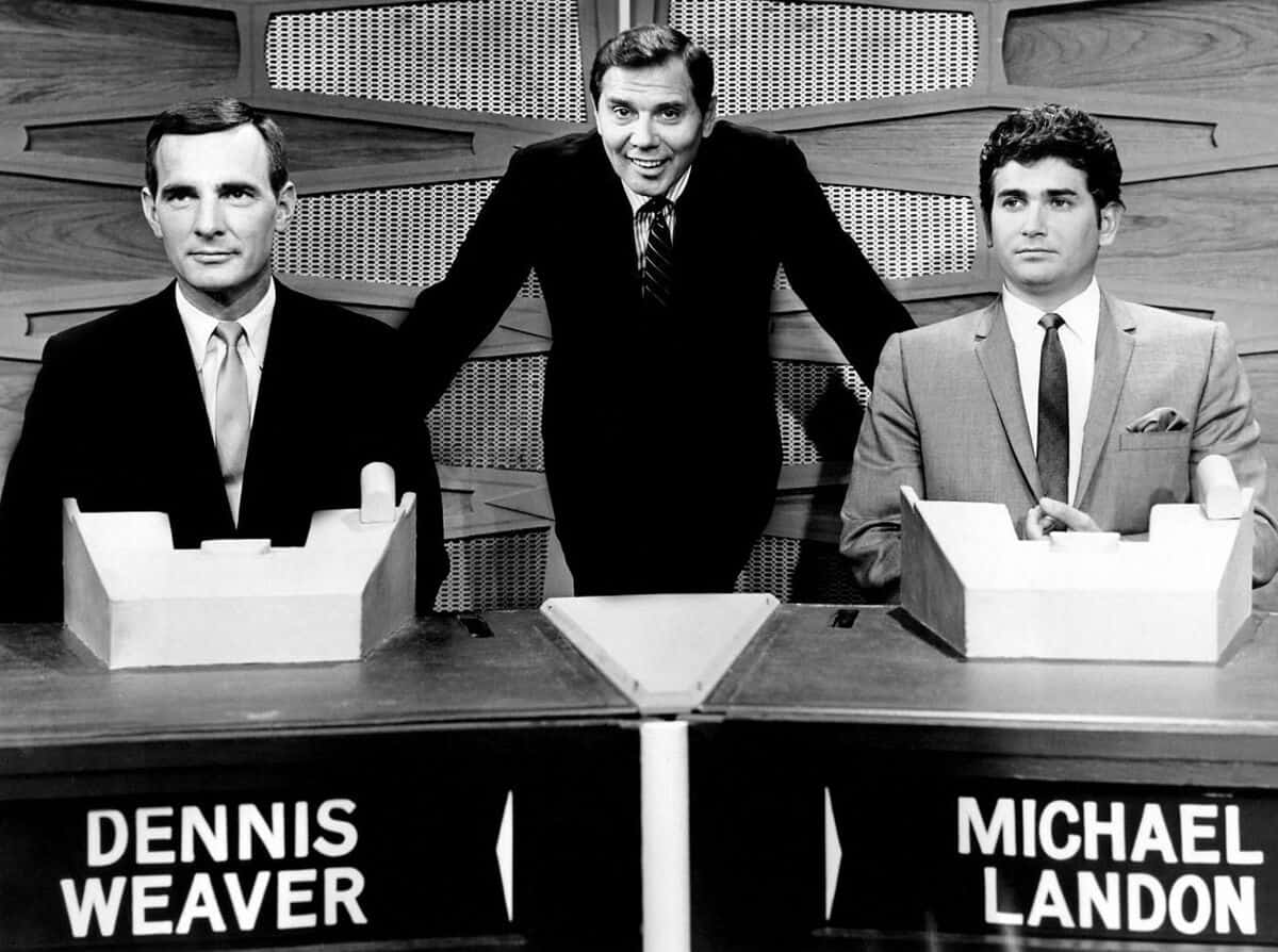 - Source URL: https://en.wikipedia.org/wiki/File:Dennis_Weaver_Gene_Rayburn_Michael_Landon_Match_Game_1964.JPG