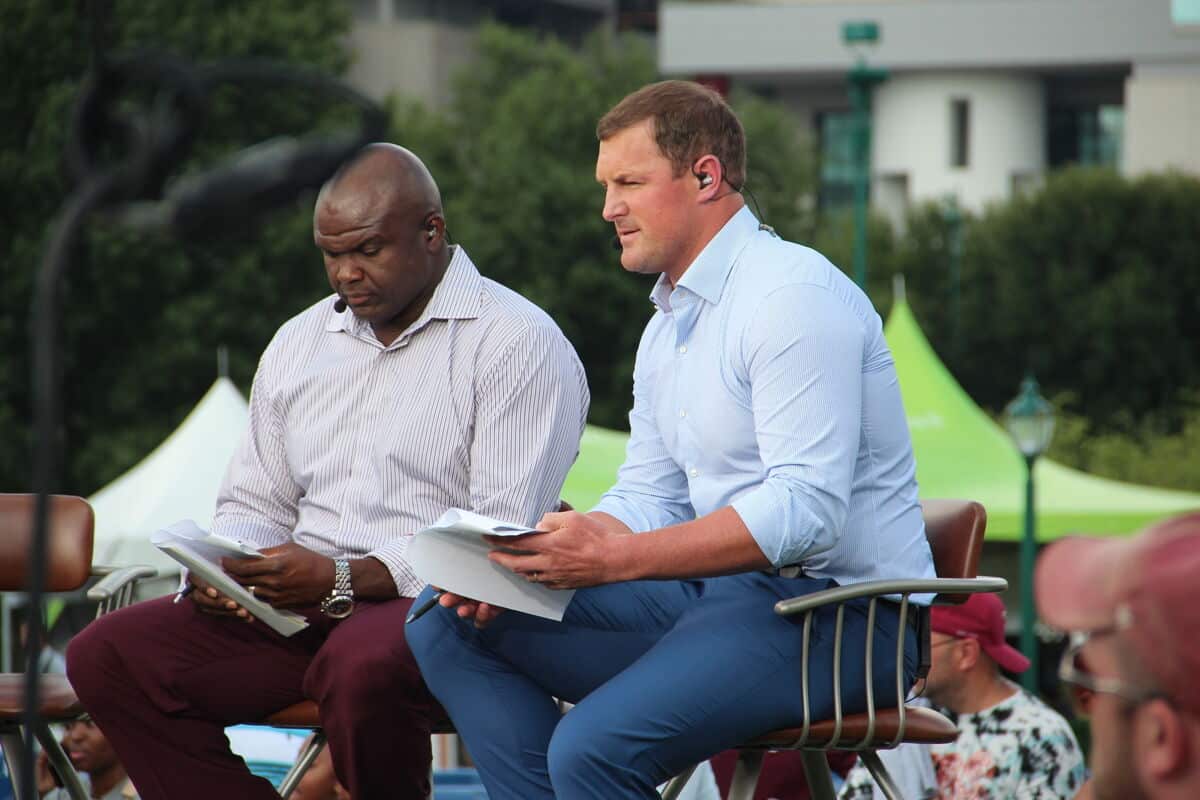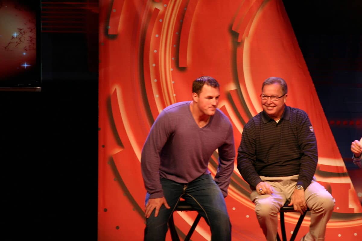 - Source URL: https://en.wikipedia.org/wiki/File:Booger_McFarland_and_Jason_Witten_-_2018_SEC_Summerfest_2.jpg