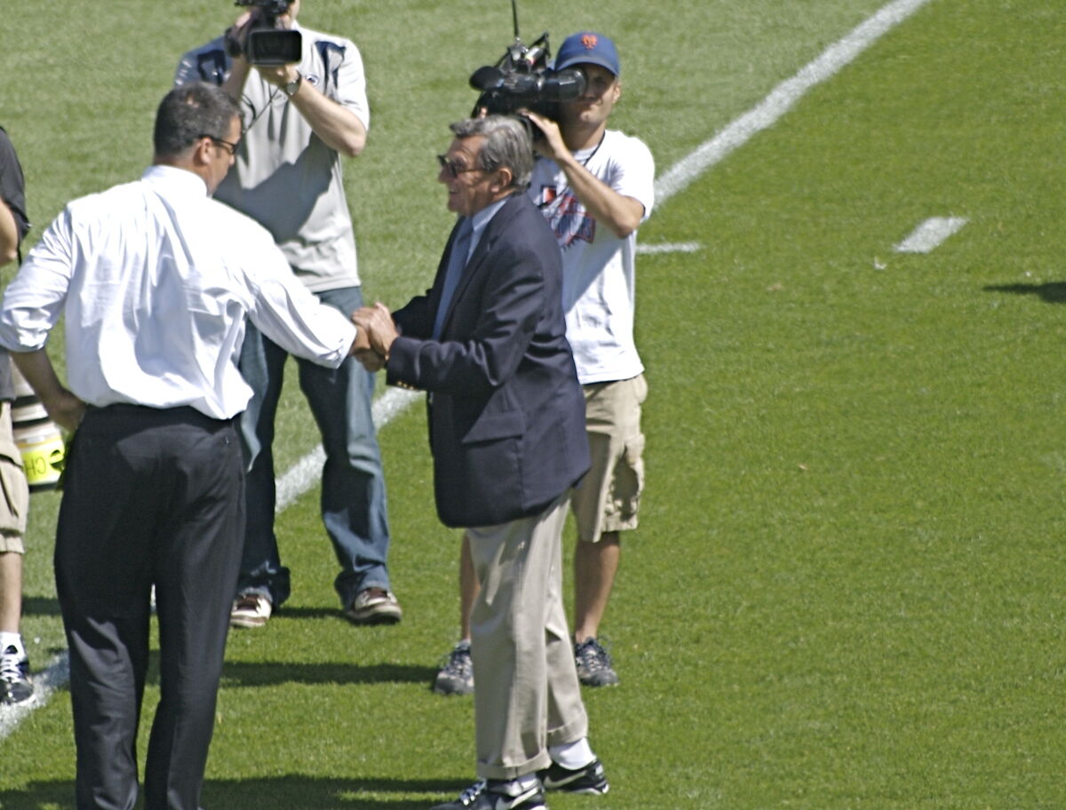 - Source URL: https://en.wikipedia.org/wiki/File:Joe_Paterno_wishes_good_luck_to_opponent.jpg