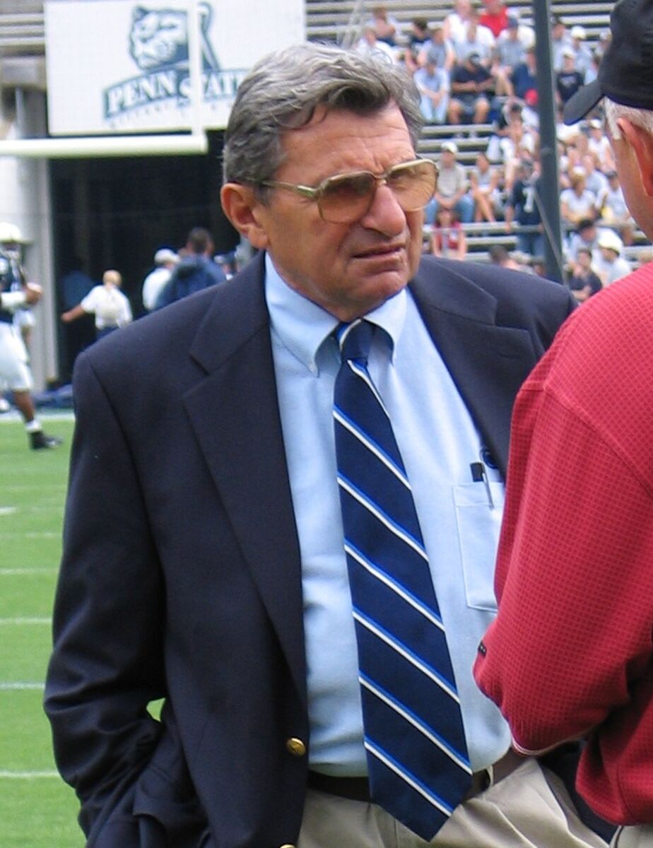 - Source URL: https://en.wikipedia.org/wiki/File:Joe_Paterno_runs_out_with_team_crop.jpg
