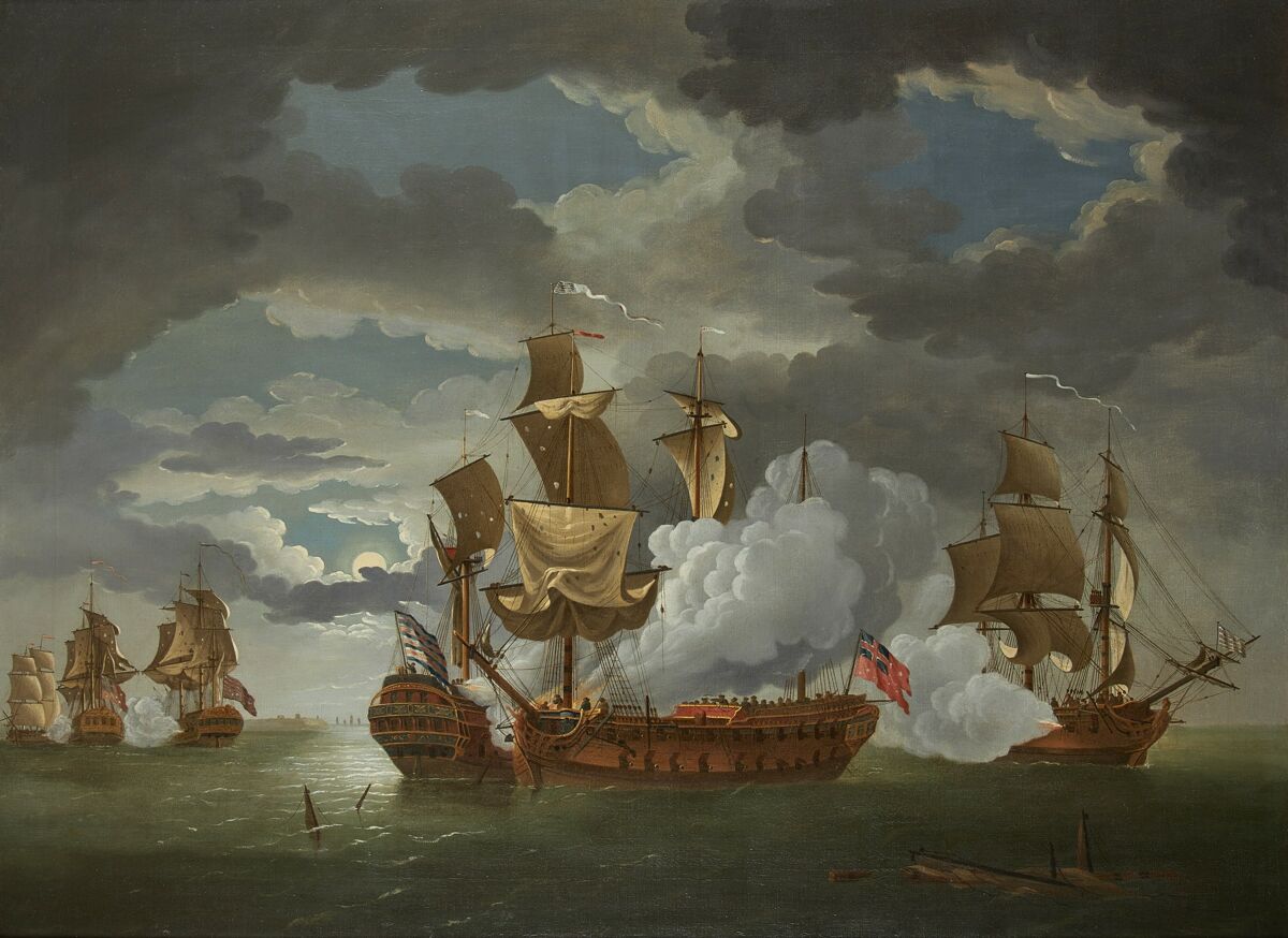 • Original Source: https://www.rountreetryon.com/artists/380-richard-paton/works/10941-richard-paton-the-action-between-the-frigates-bonhomme-richard-capt/