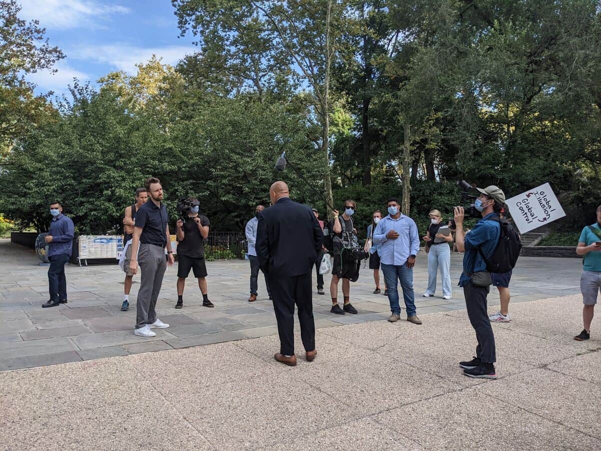 - Source URL: https://en.wikipedia.org/wiki/File:Klepper_interview_NYC_vaccine_mandate_protest.jpg
