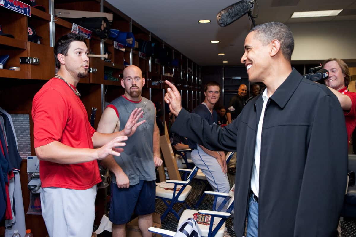 - Source URL: https://en.wikipedia.org/wiki/File:Josh_Beckett_Kevin_Youkilis_Barack_Obama.jpg