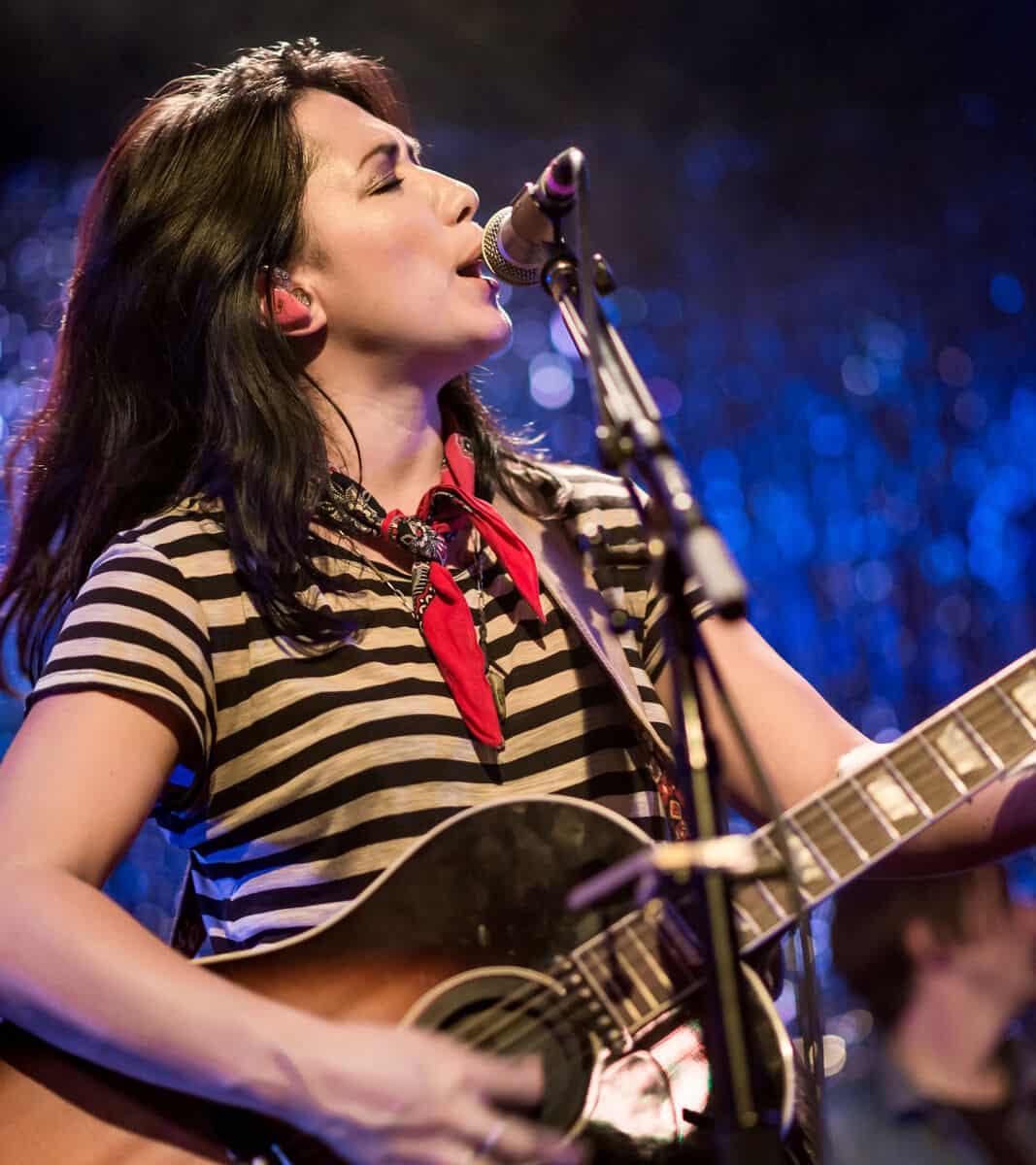 | Curiosities and Trademarks | Likes to perform barefoot Taylor 614ce guitars and Gibson Hummingbird guitar Always throws her guitar pick(s) out to the audience at the end of every concert she performs. Sometimes wears a bandana around her forehead |