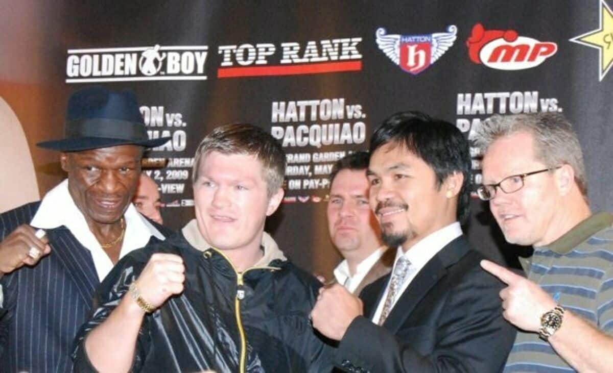 - Source URL: https://en.wikipedia.org/wiki/File:Hatton_and_Pacquiao_with_trainers.jpg
