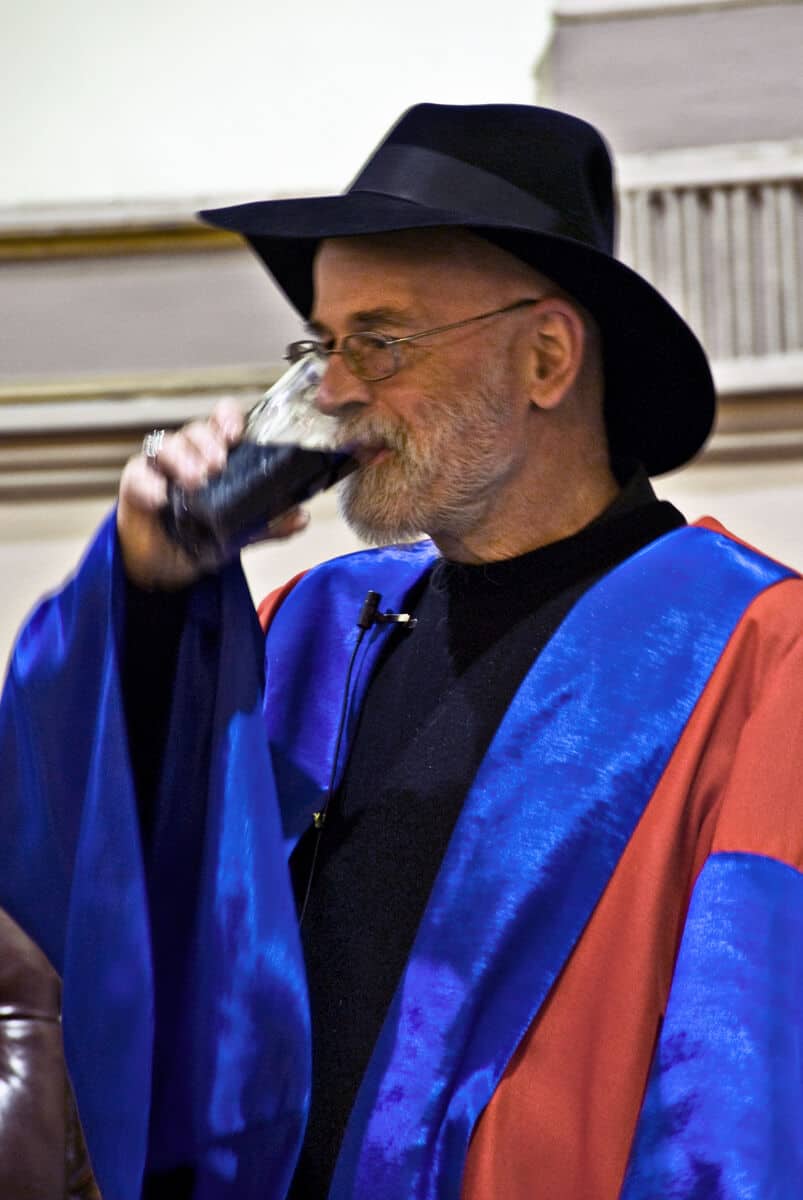 - Source URL: https://en.wikipedia.org/wiki/File:Terry_Pratchett_honorary_degree_TCD.jpg