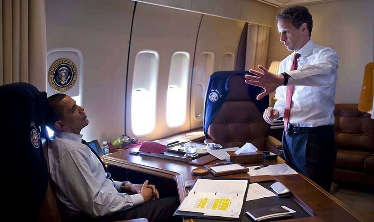 - Source URL: https://en.wikipedia.org/wiki/File:Barack_Obama_%26_Timothy_Geithner_on_Air_Force_One_3-31-09.JPG